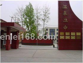 北京市温泉第二中学建于1971年,是海淀区中关村科技园区北部新区唯一公立、完全中学。依山傍水的温泉二中,环境优美,风景迷人,学校地处三零四研究所和北京航空材料研究院内,四千多位高层次研究人员形成良好的文化氛围。学校校风纯正、管理到位、和谐有序,拥有得天独厚的学习条件。学校教学设备完善,教师队伍素质优良,多次获“质量优秀奖”和“质量纵深战成绩显著校”称号,2003年被北京市教委评为“电化教育优类校”,被海淀区政府评为海淀区“教育先进体”。2006年被北京市奥组委授予“奥林匹克教育示范校”,2007年被北京市教委授予“北京市高中新课程改革样本校”,2007年被国家教育部授予“信息技术应用先进单位”。
